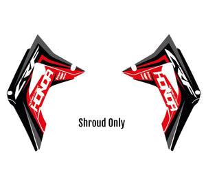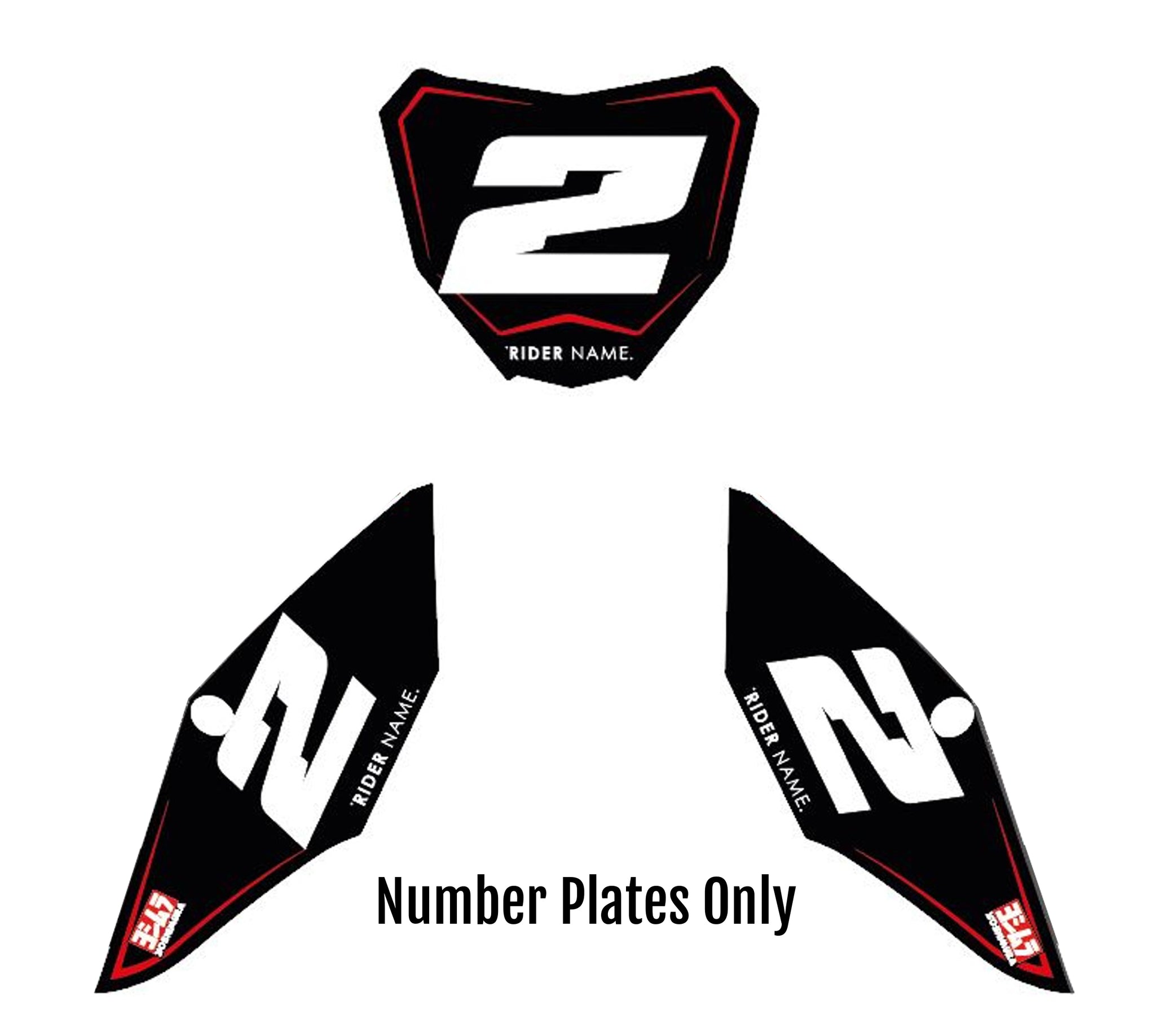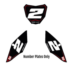 -Full Graphics Kit's include printed graphics for - Tank Shrouds / Fuel Tank, Side Number Plates, Airbox, Rear Fender, Front Fender, Front Number Plate, Fork Guards, and Swingarms (Contents may vary depending on model selected).