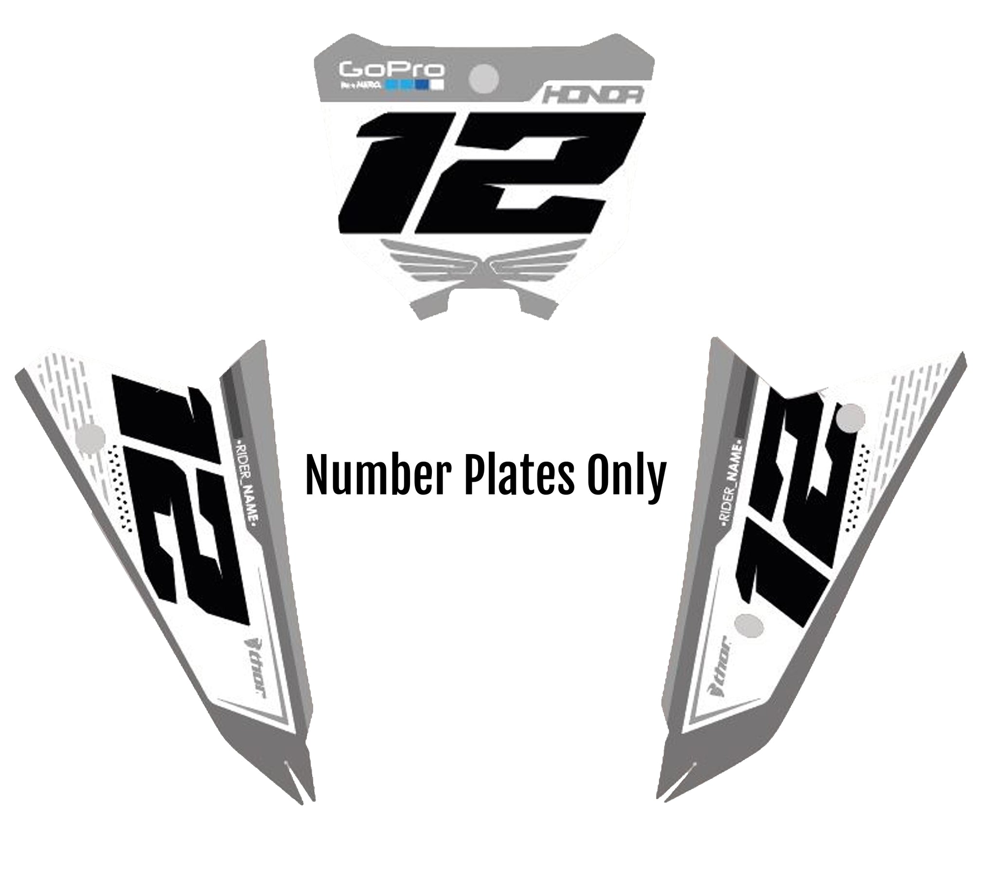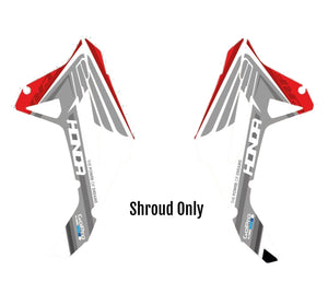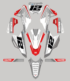 -Full Graphics Kit's include printed graphics for - Tank Shrouds / Fuel Tank, Side Number Plates, Airbox, Rear Fender, Front Fender, Front Number Plate, Fork Guards, and Swingarms (Contents may vary depending on model selected).