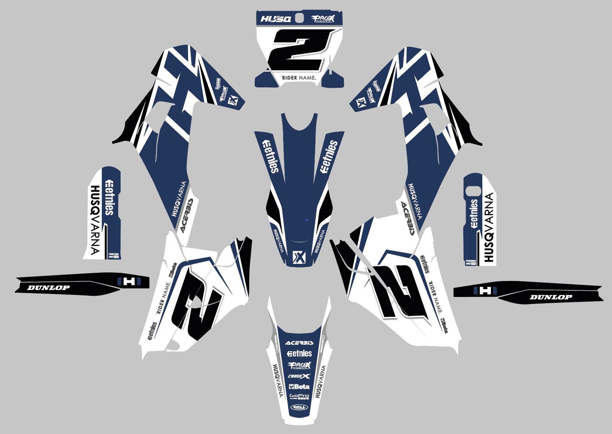 -Full Graphics Kit's include printed graphics for - Tank Shrouds / Fuel Tank, Side Number Plates, Airbox, Rear Fender, Front Fender, Front Number Plate, Fork Guards, and Swingarms (Contents may vary depending on model selected).