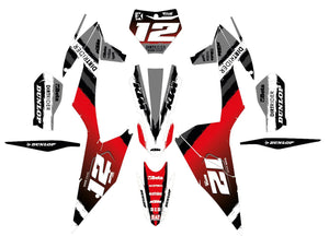 -Full Graphics Kit's include printed graphics for - Tank Shrouds / Fuel Tank, Side Number Plates, Airbox, Rear Fender, Front Fender, Front Number Plate, Fork Guards, and Swingarms (Contents may vary depending on model selected).