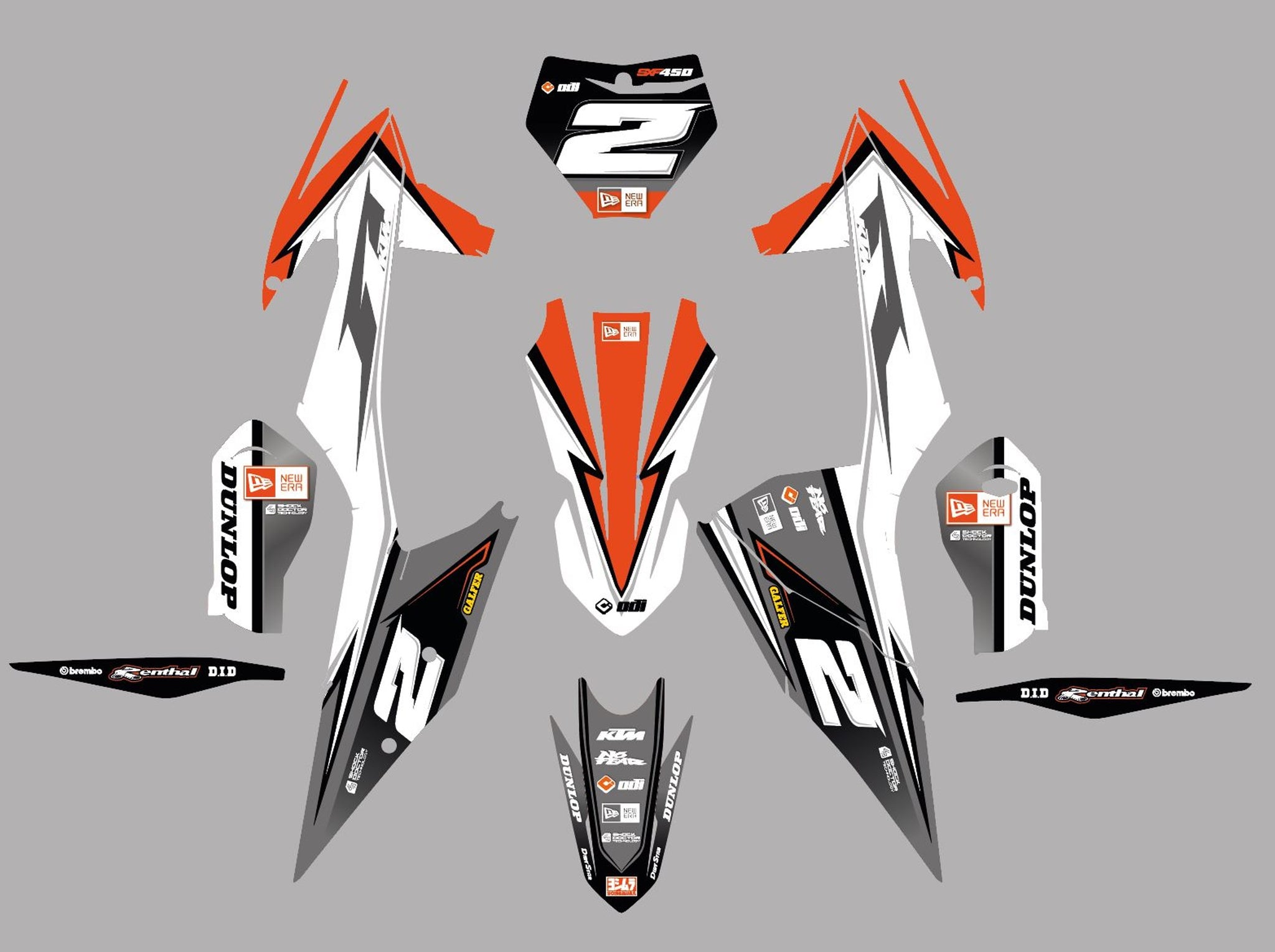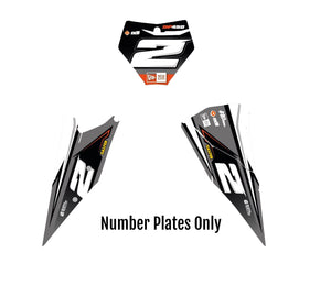 -Full Graphics Kit's include printed graphics for - Tank Shrouds / Fuel Tank, Side Number Plates, Airbox, Rear Fender, Front Fender, Front Number Plate, Fork Guards, and Swingarms (Contents may vary depending on model selected).