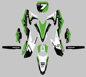-Full Graphics Kit's include printed graphics for - Tank Shrouds / Fuel Tank, Side Number Plates, Airbox, Rear Fender, Front Fender, Front Number Plate, Fork Guards, and Swingarms (Contents may vary depending on model selected).